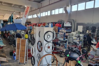 Neben den besagten Dienstleistungen haben wir auch innerhalb der Trockenmarina ein Nautik – und Camping Shop, wo Sie alles für Ihr Lieblingshobby finden können.